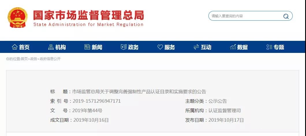 10月17日,市場監(jiān)管總局發(fā)布關(guān)于調(diào)整完善強制性產(chǎn)品認證目錄和實施要求的公告,對強制性產(chǎn)品認證目錄和實施要求進行了調(diào)整: