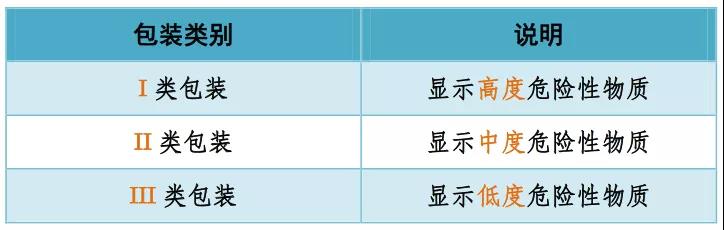 出于包裝的目的,除第1類、第2類、第7類、5.2項和6.2項物質以及4.1項自反應物質以外的物質,按照它們具有的危險程度劃分為三個包裝類別: