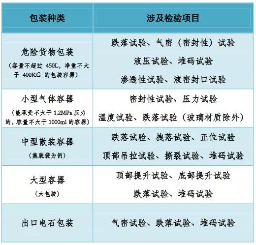出口危險貨物包裝容器性能檢驗涉及項目如下: